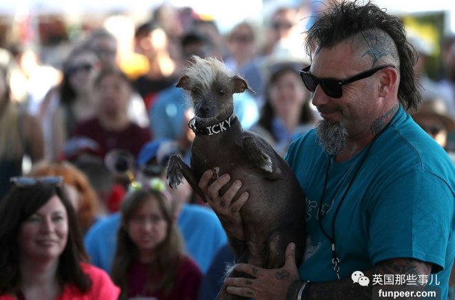 這是Icky第6次參加最丑狗大賽,Icky是一個經常拍雜誌大片的時尚狗,曾經為北加州抗艾機構籌集過1萬美元。對這個比賽而言,它的顏值註定是贏不了的,Icky這次來也主要是為了非盈利獸醫組織籌款,是個好寶寶呢~