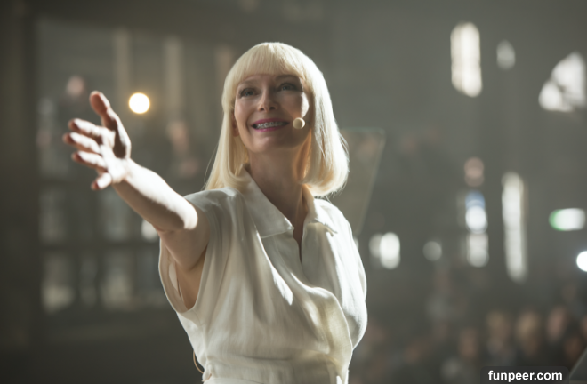 ▲▼龐然大物玉子(上圖右)和人類好友美佳,因為蒂妲史雲頓(下圖),活生生被拆散。(圖╱Netflix,2017.06.27)