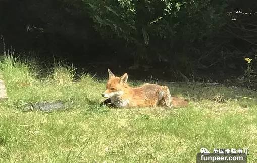 對,你發現了....這傢伙每天就是睡睡睡啊!!! 現在英國夏天,天黑的晚...它大概每天要這樣睡到晚上9點才會走,大概是出去找吃的...然後又到第二天一早5點回到這裡,又睡上一天.... 百科上說,狐狸傍晚外出覓食,天明始歸...確實是這樣... 院子裡從來沒有出現過狐狸屎,也沒有騷味和尿味....白天它每睡醒一覺起來溜達溜達的時光里,會偶爾消失10分鐘...跑去後面的樹叢里,過一會又回來....我覺得...它大概真的是跑去其他地方便便吧-。-! 對了,前幾天....我的投餵計劃成功了...我把狗糧關頭的錫紙只撕開一個小口..這樣喜鵲就不會來偷吃.. 但是它卻可以聞得到味道..凌晨4點,它跑來吃掉了罐頭...