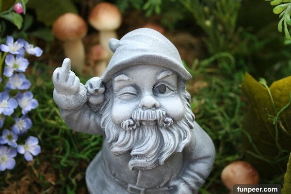 1.「古羅馬自.慰之神普里阿普斯 (Priapus) 的雕像 (戴尖帽、勃起) 常被擺在門廊或院子裡。對希臘人來說,他是邊境之神,所以很常在古羅馬時期的住家門廊和草皮上出現他的雕像。至今仍有許多人習慣把祂擺在院子裡,也就是我們常見的花園地精 (Garden Gnome)。」-VulcanHobo