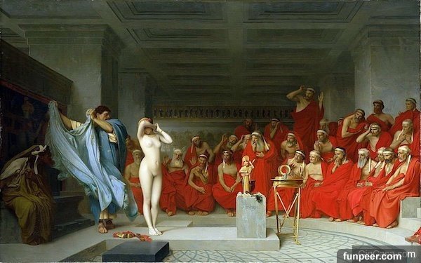 14.「芙里尼 (Phryne) 是古希臘時期的妓女,也是位著名的交際花。她當時被控不潔,即將在法庭上敗訴的那刻,她猛然脫光衣服,對眾人說:『你們難道忍心摧毀這對美乳嗎?』於是她被無罪釋放。」-phonethe