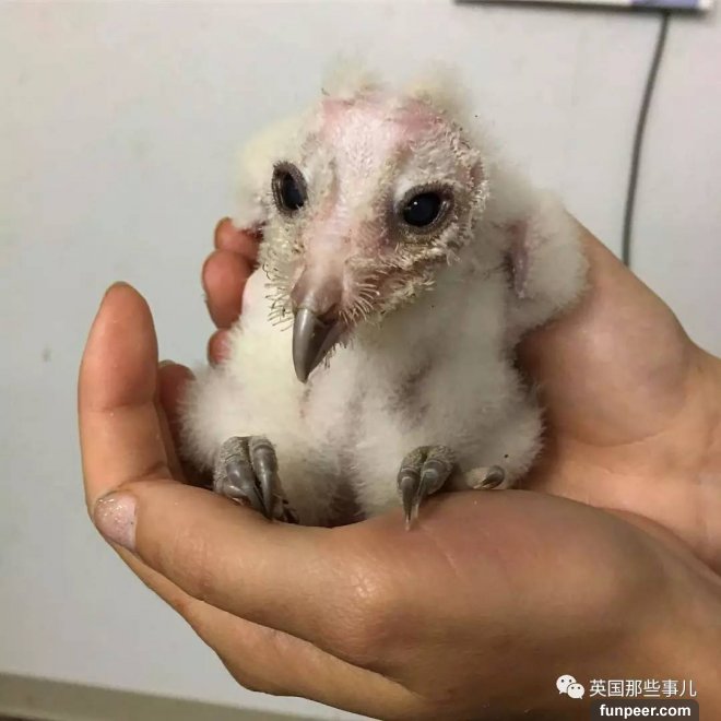 英國小貓頭鷹『這是一隻英國小猴面鷹,只有16天大。和北美猴面鷹的差別是,它們體型更小,羽毛更淡...』