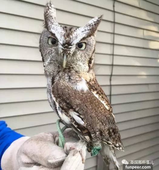 東美角鴞....這隻鳥因為不小心撞到窗戶上,導致眼睛和翅膀受傷,成為了救助站的永居民....