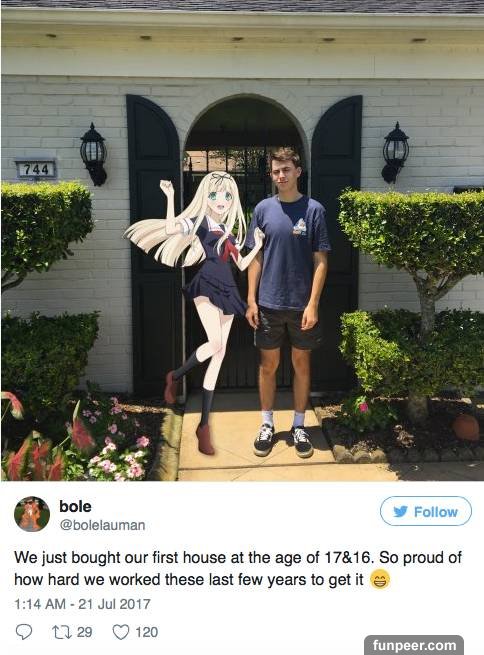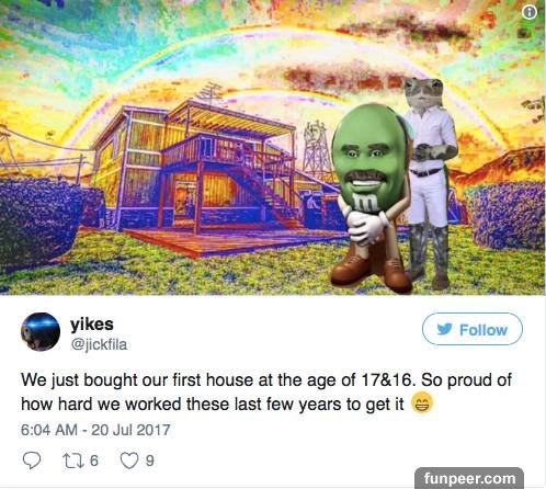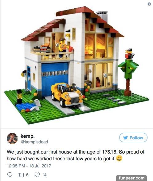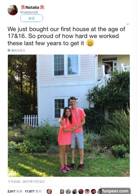 但是當Natalia看到照片的時候,就覺得照片有點滑稽: 「我怎麼看都覺得有點像那些買了房子的人,第一次和自己房子的合影。」 出於好玩的心情,她把這張照片發到了網上,然後開玩笑寫了一句—— 「 我們在我們16,7歲的時候買了我們的第一棟房子,想起這些年來的努力,我真的覺得太驕傲了。」