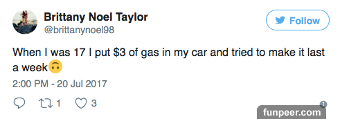 「我17歲的時候花3美元買的燃氣,至少都要堅持一周才可以。。」