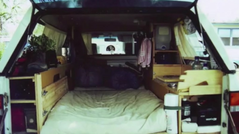 於是他決定改造自己的箱型車,將後座位置加寬後放入柔軟床墊,再用別人不要的木板製作一些小櫃子可以放一些生活用品,其他地方則可以放一些傢俱用品,像是杯子、毯子、碗盤等等,雖然空間沒有很大,但是可以說是應有盡有,改造功力讓人超驚艷!