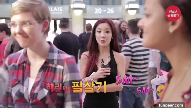這好像是一個韓國節目,一名棒子妹到國外參加