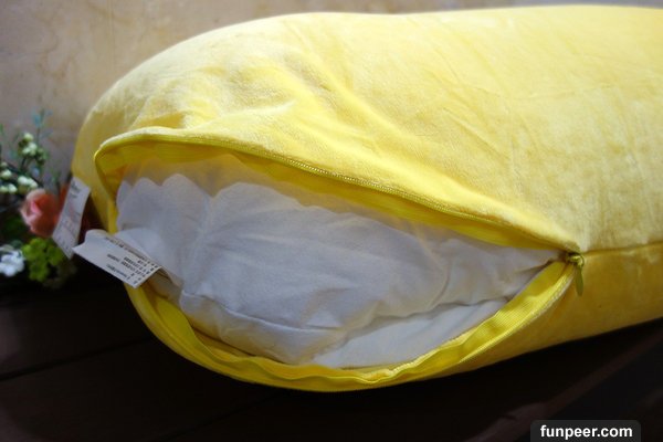 雷伏蟎香蕉防蹣抱枕是分離式防蟎抱枕,抱枕外皮可拆下清洗,貼心隱形拉鍊設計不刮手,打開就能看到白色的獨家專利生物性防蟎枕心,有剝香蕉的感覺。枕心和外層上都車有產品標,上面會有品名、材質、製造商資訊、清潔方式,外皮要拆裝也很方便。 對了,這款香蕉防蹣抱枕的外皮雖然可以水洗,但裏面的枕心是不能清洗的喔!