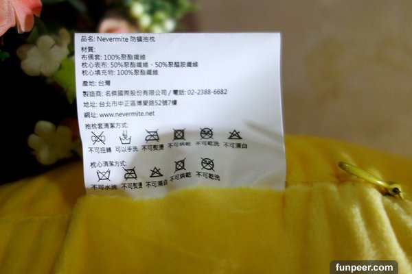 雷伏蟎香蕉防蹣抱枕柔軟的舒適觸感,表層布料透氣不悶熱、不脫毛、不易起毛球,還有精緻的車工,每個細節都讓人看得很安心。抱枕外層布套可以手洗,洗好之後懸掛晾乾就好,但不能乾洗、不能漂白、不能烘乾、不能熨燙喔!