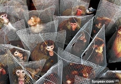 藉由這些怵目驚心的牢籠,這些少女們希望通過扮演那些被關在籠子裡動物,來呼籲人們保護野生動物。她們以身體力行的方式,希望大家能感同身受知道這些動物們的痛苦! ▼野生猴