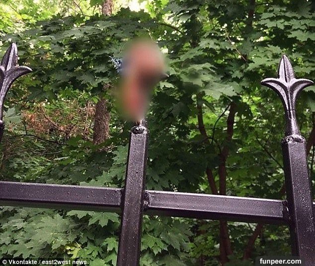 一名俄羅斯男子在翻金屬圍籬時慘遭「絕子絕孫」,整組生殖器就這樣留在圍籬的尖端上。