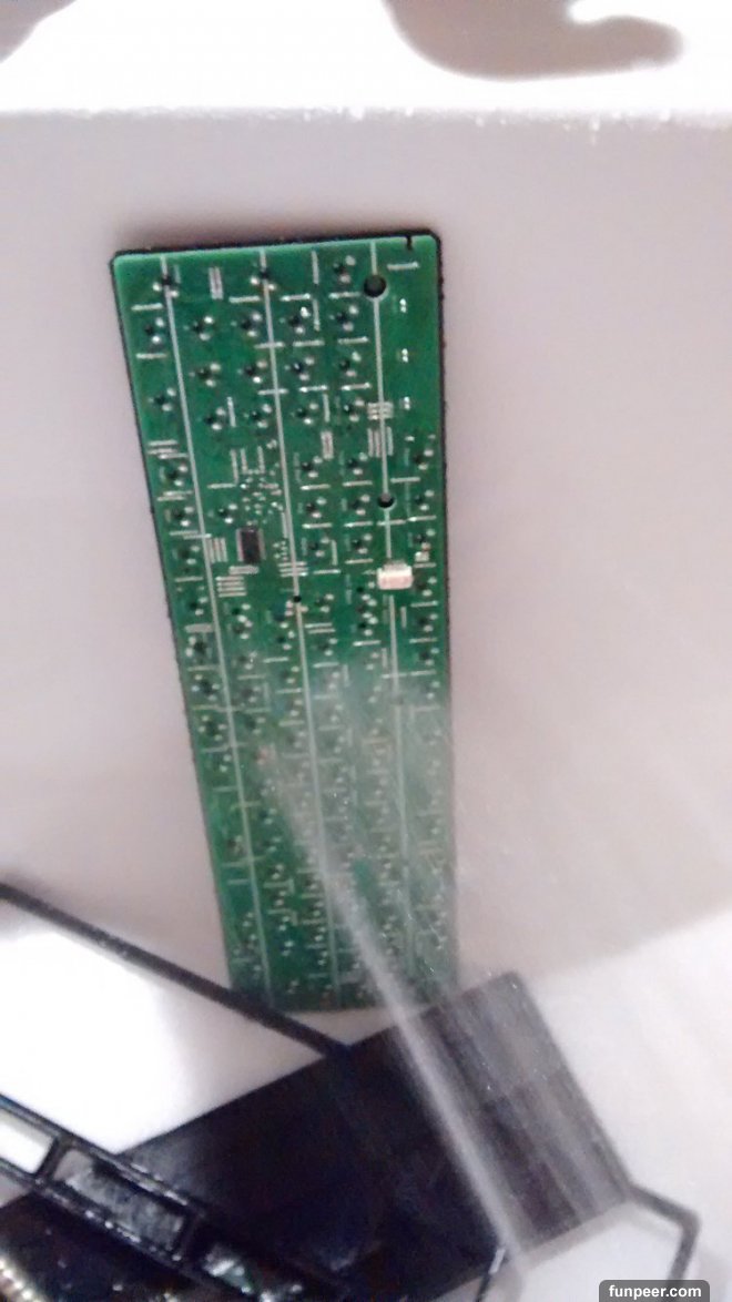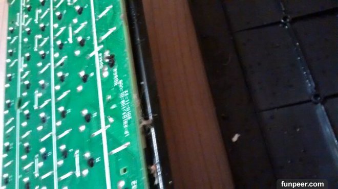 重新組裝後,他發現不只鍵盤按鍵需要修理,底下的電路板也須處理▼