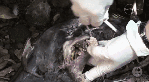 可又是什麼樣的疾病能讓這隻鸕鶿受盡折磨,落到如此下場呢? 研究人員決定對這隻海鳥進行解剖 然而,當他們剖開這隻澳洲海鳥的肚子,所有人,都被眼前的場景震驚到失語!