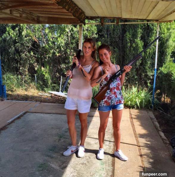 這些舉着一米多長獵槍的照片在她的ins上隨處可見… 還有一些照片是在打獵途中拍的..