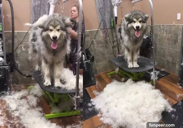 主人說自從第一次給它洗過澡以後就不敢自己動手了,再貴也要去寵物店洗! 你們來感受下這掉毛量……