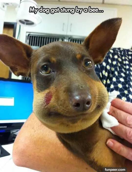 笑歸笑,面對這種情況,作為主人的我們還是應該重視起來,畢竟 狗狗們的忍痛能力很強,又不會說話,所以受了傷往往容易耽擱。 如果是被蜜蜂蟄到 ,注意要幫它把刺拔出,一般過段時間後腫脹會自己消退,但要是很嚴重的話,最好去寵物醫院打個消炎針。