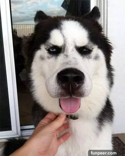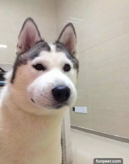網友表示當時看它腫成這樣已經笑到彎腰,而二哈可能知道自己被嘲笑了,所以露出這樣表情↓