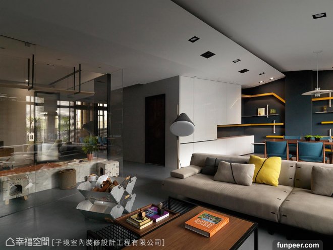 ▎小編看設計現代人稱愛貓人士為貓奴,意指願意為了寵物愛貓做任何事情的主人,購入各式推車、糧食、逗貓玩具……等應有盡有的產品,更別說在家裡替貓寶貝設計一個專屬空間了!依循屋主喜好,子境設計就在房屋的中心規劃了一處T型玻璃貓房,象徵寵物就和家人一樣重要。公領域採穿透式介質規劃隔間,希望透過室內設計拉近家人之間的距離,也讓貓咪能隨時伴於左右。古振宏設計師以現代風格為設計主軸,挹注些許工業風元素,賦予空間多元調性,並鋪敘無接縫地坪帶出場域寬闊視感,細品屋主日常習慣,貼心構築質感生活宅邸。