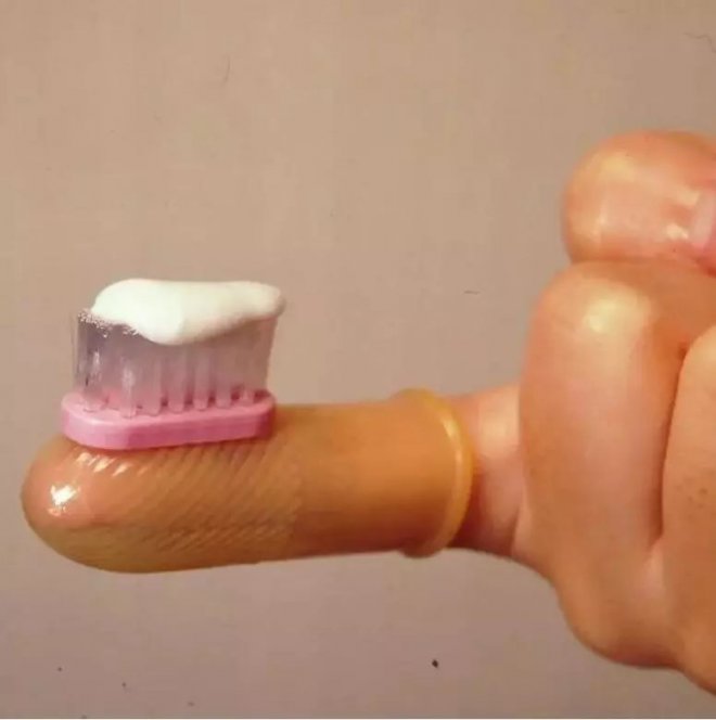 據說是手指牙刷,可為什麼像是防性病的