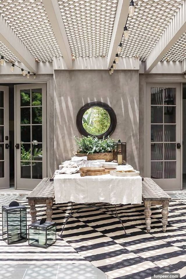 設計師Emily Henderson建議混搭室內和室外的布料材質,「把室內的桌巾帶到室外,就能打造完全不同的氛圍。」不過也不是隨便搭配就好,最好維持色調的和諧,才不會過於混亂。