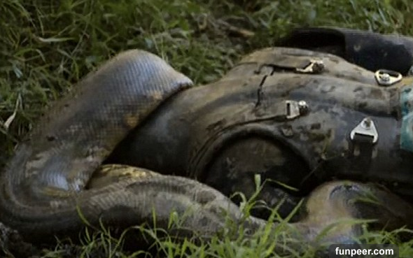 (source:dailymail,下同)面對地上的巨蟒,穿上「鐵衣」的男子直接壓到蟒蛇身上。我們知道,蟒蛇無毒卻有強壯的身體,它們殺死獵物多依靠纏繞讓獵物窒息。這是一種有效而致命的狩獵方式,纏繞對於巨蟒來說幾乎就是本能。 ▼鐵衣男子