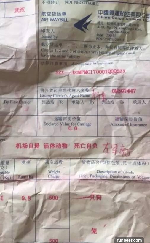 我立刻聯繫東航詢問事情原委,但對方卻說豆豆在打開艙門時就已經沒有了呼吸。 後來,他們在我什麼都不知道的情況下拿出這個單據來推卸責任,但這個單據我從未見過!