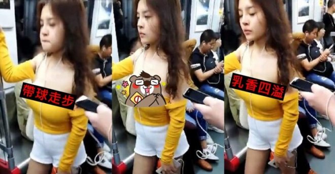 車廂最美風景!長髮妹運球上車「白嫩大奶球狂震」乳
