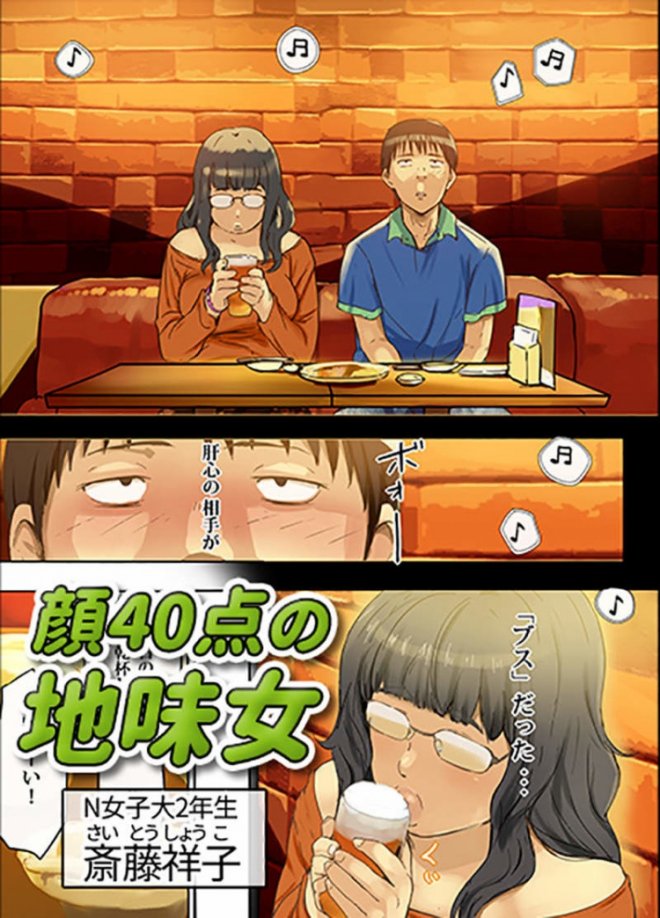 比如今天要講的《讓人變成廢人的醜女》這一本同人漫畫就是在描述主角參加聯誼的時候遇見了一個長相40分,但是跟她"熱烈鼓掌啪啪啪"以後卻發現她的身體竟然是120分高水準。