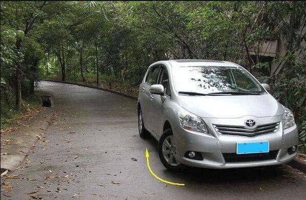 「上坡往路中間打,預防下滑時滑到路中間,下坡停車往路緣打」