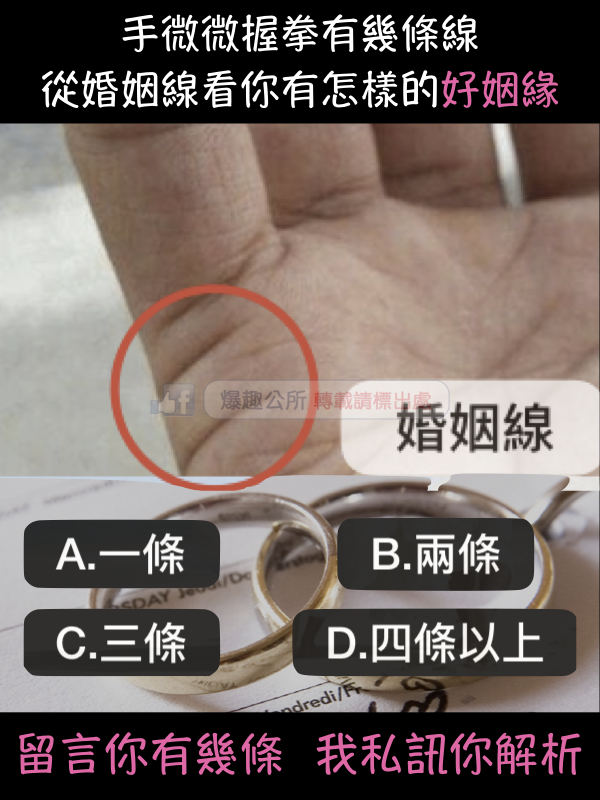 【B心測】手微微握拳有幾條線? 從婚姻線看你有怎樣的好姻緣