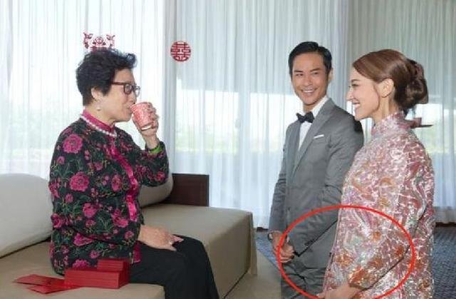 說到小嬌妻陳凱琳,她可是2013年的香港小姐的冠軍,之後進入娛樂圈也參演過很多電視劇,和鄭嘉穎真實郎才女貌的一對,穿上婚紗的她就是最美的新娘,不過讓很多網友覺得奇怪的是穿上潔白婚紗的她身材是很瘦的,但是換上傳統的龍鳳褂的時候,莫名覺得腰粗了一圈,很多人都懷疑兩人是奉子成婚,婚紗是高腰的所以肚子一定程度被遮住了,但是穿上這龍鳳褂時酒顯得很明顯了。