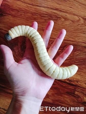 照片曝光後,不少網友都驚呼連連,「傳說中的天蠶」「這個我不行,起雞皮疙瘩」「好逼真」「嚇到我了」「這樣以後他看到長得一樣的蟲,會不會撿起來吃」「這我吃不下去哈哈哈」「裡面再擠個卡士達醬就更完美了」。