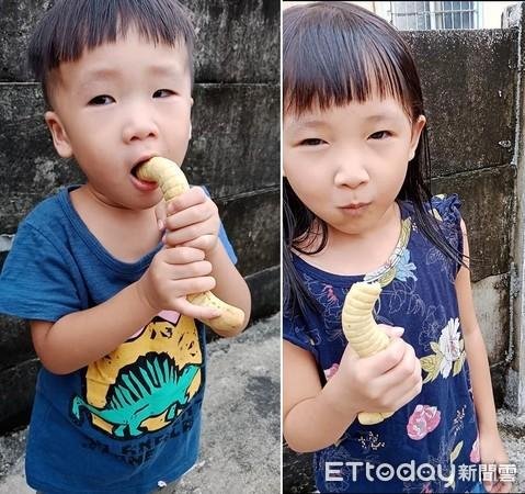 ▼兒子女兒吃得超開心。