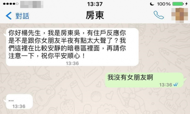 但是一名網友貼出和房東的對話,原本房東只是房東收到抗議,希望房客和女友恩愛的時候能夠「小聲一點」,沒想到卻意外讓整件事情變的超恐怖!?