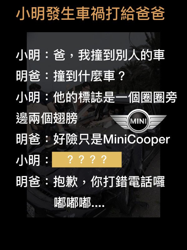 小明發生車禍打給爸爸 結果為什麼會被掛電話勒?