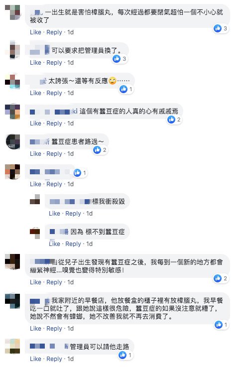 這篇文章曝光後,許多網友都表示,自己也是第一次看到有人這樣掛樟腦丸的,紛紛留言說「蜘蛛網要定期清,才能解決問題吧」、「蠶豆症真的不能碰也不能聞,更不用說有些人甚至不知道自己有蠶豆症,萬一碰上了要怎麼辦」、「很多管理員都是沒出事,就不管不顧的」、「真的會出人命」、「其實如果住戶有小寶寶的,環境也不太能有萘丸」。