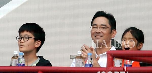 ▲三星太子李在鎔、前太子妃林世玲以及一雙兒女。