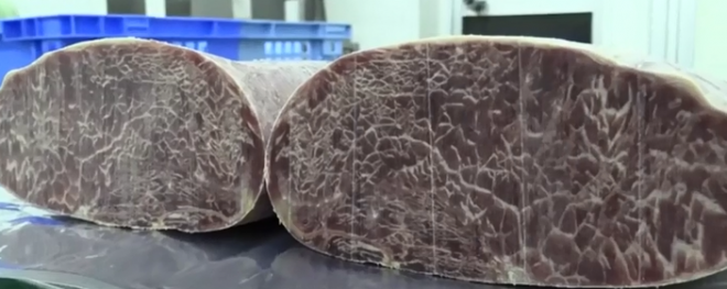 ▼雪花牛也被稱為大理石紋牛肉、霜降牛肉。這種牛肉的特點是脂肪分佈均勻,呈現雪花紋,而且脂肪含量高,味道超級好。天然的雪花牛太少,很多業者乾脆往普通牛肉裡注脂肪。早在80年代,日本商人就發明了人工注入脂肪的技術。