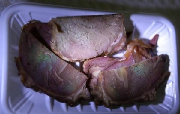 自己買了牛肉回家,早上把牛肉放烤箱再拿出來後,竟發現……綠綠的!