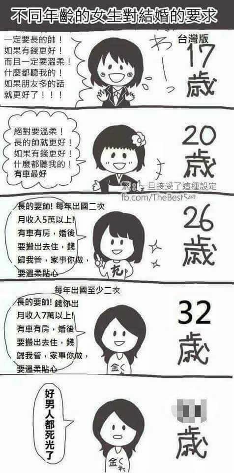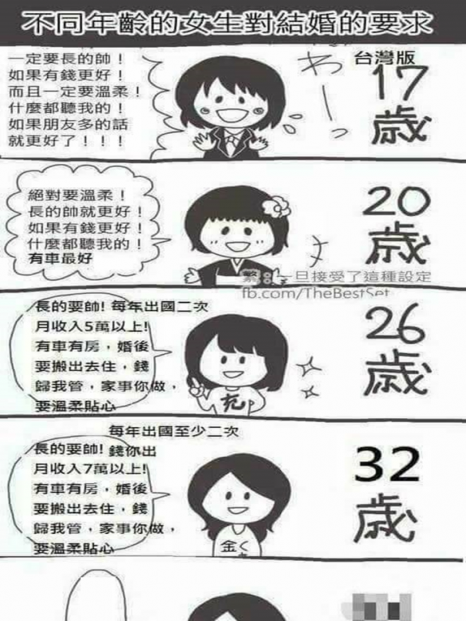 台灣版》不同年齡的女生對結婚的要求 - Flxdaily