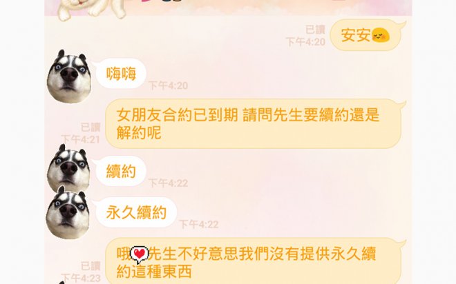 「不好意思您的女朋友到期了喔」請問要續約還是解約… 網友:根本超強閃光
