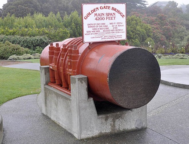 金門大橋鋼纜:這可不是台灣的那個金門,而是位於美國舊金山的金門大橋。它有兩根主要鋼纜,每根都由27,572條鋼索組成,超級粗!