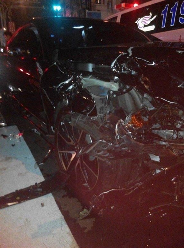羅先生表示他是在綠燈時開車直行,但是卻被蔣姓消防員開著救護車高速撞上,害他身體多處擦傷,車頭還幾乎全毀,要不是命大可能早就歸西了!