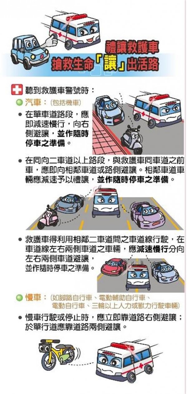 若是有行人或駕駛不主動退讓造成救護行動困難,可處新台幣600元以上、1800元以下罰鍰,所以大家還是要彼此互相尊重,也免得傷自己荷包去付罰金,交通安全知識可是很重要的!