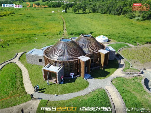 其中一座,他帶領的團隊與建築設計師張海翱所設計的草原星空圖書館「木蘭坊」,以傳統的蒙古包為藍本,透過連接數個蒙古包成為一個大空間,頂部有一個圓形的天窗供採光,週邊還設有餐廳及臥房。