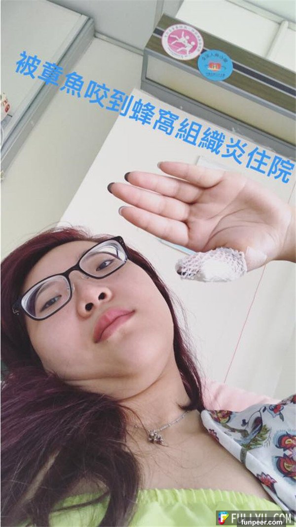 影片來源宛宛兒粉絲專頁臺灣網路紅人宛宛兒日前上載了一段章魚影片,表示:「我等一下要拍一個東西,那就是等下我要抓著這章魚然後讓它吸住我的胸部」!這種挑戰,簡直讓網友不敢相信!宛宛兒表示,這樣的挑戰讓她感到十分緊張,但是工作狂的她,也只好拼了!萬萬沒想到的是,這位元網路紅人這讓章魚一吸,居然被章魚「吸到入院」!原來,她在拍攝過程中。居然出了點小意外!她捉取章魚時,居然被章魚咬了,而且手還被章魚咬到腫了起來,結果被送院治療!但是不久後,她就表示被章魚咬到! 「原來章魚會咬人 而且咬完會整隻手腫又刺又麻 臭章魚」,並PO出在醫院就診打針的影片,原來她因為被章魚咬傷,罹患蜂窩性組織炎,必須住院治療。以下就是網路紅人被章魚咬後的傷勢...