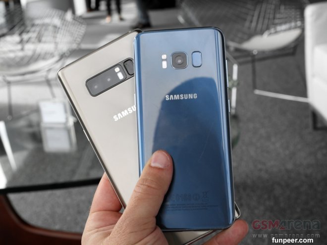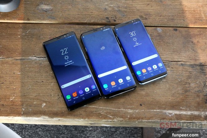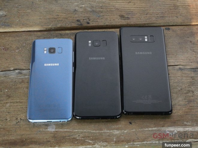 ▲Galaxy Note8(左),S8+(中),S8(右)