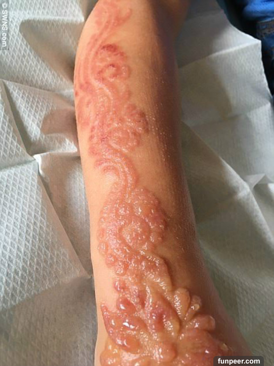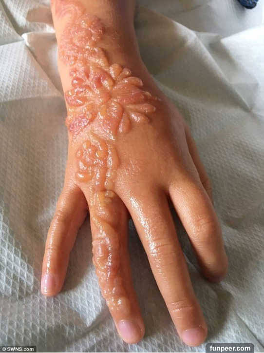 其實英國衛生局一直在呼籲民眾,有些Henna顏料裡有化學染料,使用一定要小心!很多不肖商人為了讓顏色快速變身變黑,會在顏料中加入大量的