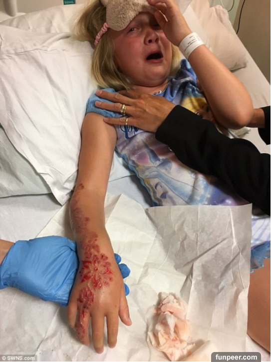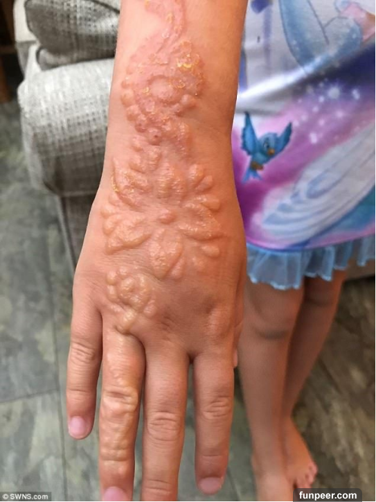 過沒多久麥迪遜開始覺得雙手很癢!沒多久整隻手臂疼痛甚至長出水泡!原來麥迪遜被化學染料給灼傷了!模樣超可怕…