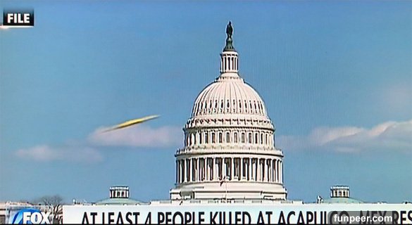 事情是這樣的,日前有一名民眾在觀看《FOX新聞》,當鏡頭轉到位在華盛頓的國會大廈時,上空突然一個飛行物體迅速飛過。